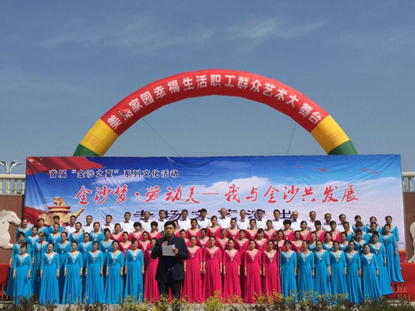5月10日,七台河市金沙新区福泽广场锣鼓喧天,生机勃勃,为了丰富和活跃我区职工群众的文化生活,展示“结对子、种文化”的优秀成果,由金沙新区委员会、金沙新区管委会主办,金沙新区总工会承办的首届“金沙之夏”系列文化活动暨“金沙梦•劳动美”开幕式专场文艺演出隆重上演。365体育直播网宣教部部长孔令勇、七台河市群众艺术馆书记刘晓波、副馆长林冰,以及金沙新区的领导班子成员观看了演出。 一首原创歌曲《我爱马场我爱家》展现出了金沙人澎湃的朝气,昂扬的锐气,浩然的正气,感染了在场的观众,博得阵阵掌声和欢呼声。演出特邀嘉宾——年仅15岁的特奥会冠军聂双月,是金沙新区的第四代人,不畏艰辛,不惧强手,志向高远,敢于拼搏,勇争第一,践行了“七台河精神”,秉承了马场老一辈的创业精神,是新时期创业创新的典范。快板《再创辉煌》展示了金沙新区职工医院的风采;幼儿园小朋友们精彩、富有童趣的表演天真可爱,金河学校教师的舞蹈展现了学校蒸蒸日上、团结拼搏、争创一流的雄心大略。合唱队员张吉领说:“这场演出是金沙新区百姓的一件盛事,感谢金沙新区政府、区总工会为职工群众、为百姓搭建欢乐的舞台,希望这样的活动越来越多”。金沙新区职工群众文化活动开展的朝气蓬勃,点亮了凝聚人心、和谐发展的新区之魂,营造出风正气顺、人和兴区的氛围,演出在《敖包相会》中进入了尾声,大家意犹未尽,纷纷表示,希望金沙新区的职工群众文化活动越来越精彩。(七台河市金沙新区总工会 王伶俐)  | 金沙新区党委副书记魏锟同志做重要讲话 |  | 金沙新区职工医院快板《再创辉光》 |  | |