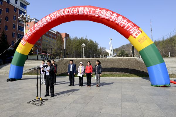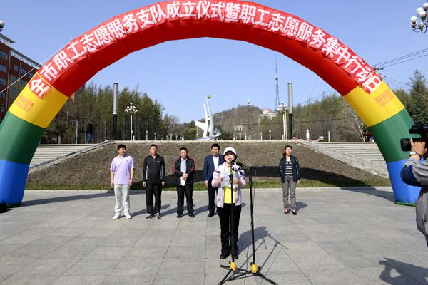 | | 市领导为志愿者代表授旗 |  | | 曲焱在全市职工志愿服务支队成立仪式上讲话 |  | | 孙发江主持仪式 |  | | 志愿者代表宣读倡议书 |  | | 参加活动的志愿者队伍 |  | | 曲焱参加植树活动 |