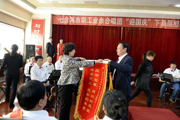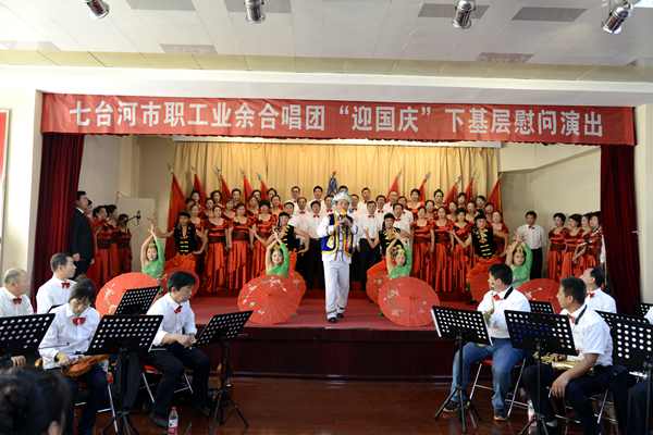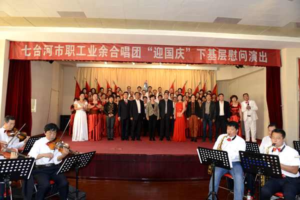 在祖国母亲六十六周岁生日来临之际,9月28日下午,由市总工会主办的“喜迎国庆,情暖职工”职工业余合唱团慰问演出活动在二零四勘探队多功能厅举行。黑龙江省煤田地质局局长、党委书记魏臣,市人大常委会副主任、市总工会主席曲焱出席活动。市总工会党组成员、二零四勘探队党组成员、文化局相关负责人及二零四勘探队干部职工150余人参加活动。 演出在大合唱《十月是你的生日,中国》中拉开序幕。演出节目丰富多彩,涵盖了舞蹈、合唱、新民乐演奏等多种文化艺术表演形式。表演者们用高超的技艺、优美的舞姿、嘹亮的歌声一次一次点燃现场气氛,引起观众的强烈共鸣,赢得阵阵热烈掌声。《保卫黄河》、葫芦丝独奏《竹楼情歌》、男生合唱《咱们工人有力量》等精彩节目轮番上演,不断把演出推向高潮。 最后,慰问演出在《共筑中国梦》的歌声中落下帷幕。此次慰问演出内容缤彩纷呈,节日氛围浓厚,让奋战在勘探战线上的广大干部职工尽享美妙的精神盛宴,展现了广大职工辛勤劳动、不怕流汗的劳动风采,充分展示了工会组织作为职工信得过,靠得住的“娘家人”对广大职工的关怀。市总工会职工业余合唱团不但把一台精彩的演出带到大家的面前,更让演出走进职工心里,为广大勘探职工们送上了一份特殊、难忘的国庆贺礼。(张保军)