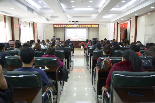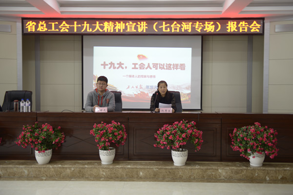 11月13日,省总工会十九大精神宣讲报告会在365体育直播网15楼会议室举行,市人大常委会副主任、总工会主席富晓东与全市各级工会代表120余人一道聆听了整场报告会。 报告会特邀《工人日报》驻黑龙江记者站站长、主任记者张世光宣讲。张世光是《工人日报》仅有的两名党的十九大参会记者之一,参与采编了多篇大会报道,以参会记者的独特角度,从新时代、新理念、新使命三个方面对十九大精神进行宣讲。宣讲内容脉络清晰、深入浅出、旁征博引、通俗易懂,引起了工会干部的强烈反响和深度共鸣,会场不时响起热烈的掌声。 会议由市总工会副主席倪秀兰主持,她要求全市各级工会干部职工要继续深入思考,认真领会,学有所悟,学有所获。要充分认识党的十九大的重大意义,切实把思想和行动统一到十九大精神上来;要切实提高政治站位,深刻领会十九大的精神实质;要坚决落实省总工会的决策部署,迅速掀起学习宣传贯彻十九大精神的热潮,确保党的十九大精神在我市工会系统中落地生根,要学深悟透、融会贯通,学以致用、学以促用,切实把党的十九大精神落实到工会工作的各方面,强化服务职工职能,不负重托、不辱使命,为推动我市经济社会转型发展建功立业。 市总工会副处级以上领导及机关全体干部职工参加了报告会。(王淑堂)  | | 市人大常委会副主任、总工会主席富晓东参加报告会 |  | | 张世光以参会记者的独特角度宣讲十九大精神 |  | | 市总工会副主席倪秀兰主持会议 |  | | 参会的各级工会干部及职工代表 | | |