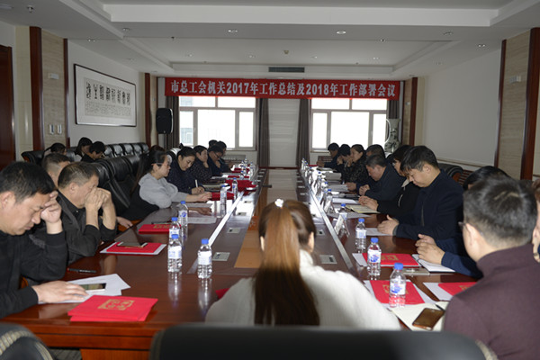 1月16日,市总工会召开机关2017年工作总结及2018年工作部署会议。市人大常委会副主任、市总工会主席富晓东出席会议并讲话,市总工会常务副主席孙发江主持会议,副主席倪秀兰宣读表彰决定,经审委主任倪英群、调研员徐玲、副调研员李玉财参加会议。