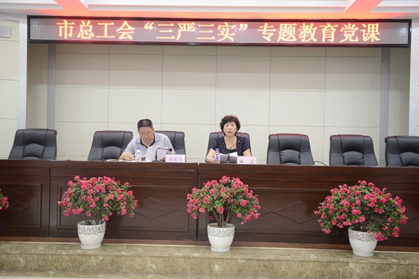 6月24日,全市工会系统“三严三实”专题教育党课在工会大夏会议室举行。市人大常委会副主任、市总工会主席曲焱为全市工会干部作“三严三实“专题教育党课辅导。市总工会常务副主席孙发江主持会议。