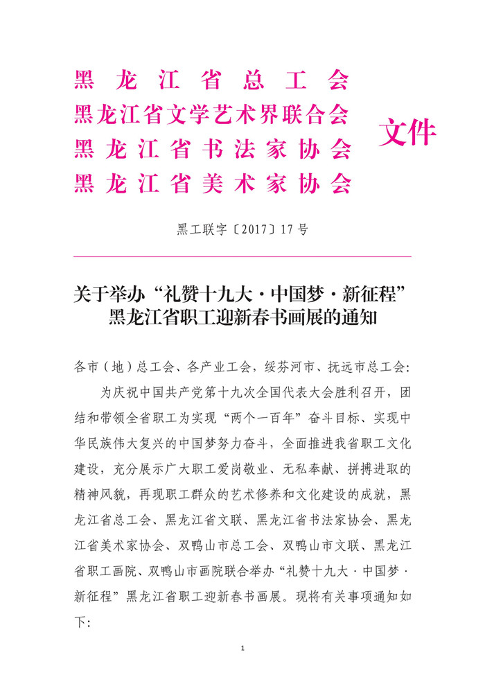 新征程”黑龙江省职工迎新春书画展的通知》(黑工联字〔