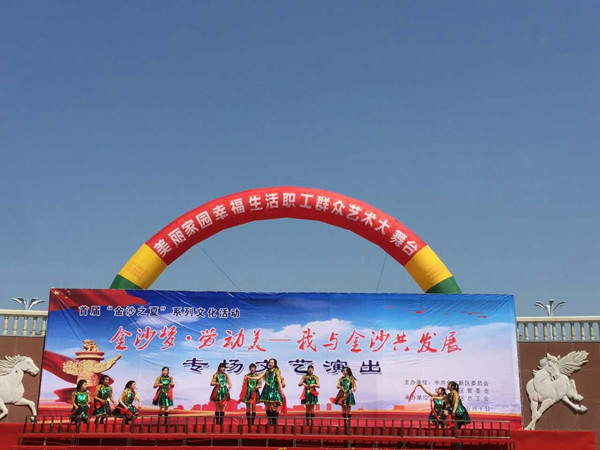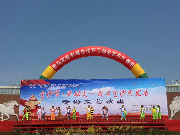 5月10日,七台河市金沙新区福泽广场锣鼓喧天,生机勃勃,为了丰富和活跃我区职工群众的文化生活,展示“结对子、种文化”的优秀成果,由金沙新区委员会、金沙新区管委会主办,金沙新区总工会承办的首届“金沙之夏”系列文化活动暨“金沙梦•劳动美”开幕式专场文艺演出隆重上演。365体育直播网宣教部部长孔令勇、七台河市群众艺术馆书记刘晓波、副馆长林冰,以及金沙新区的领导班子成员观看了演出。 一首原创歌曲《我爱马场我爱家》展现出了金沙人澎湃的朝气,昂扬的锐气,浩然的正气,感染了在场的观众,博得阵阵掌声和欢呼声。演出特邀嘉宾——年仅15岁的特奥会冠军聂双月,是金沙新区的第四代人,不畏艰辛,不惧强手,志向高远,敢于拼搏,勇争第一,践行了“七台河精神”,秉承了马场老一辈的创业精神,是新时期创业创新的典范。快板《再创辉煌》展示了金沙新区职工医院的风采;幼儿园小朋友们精彩、富有童趣的表演天真可爱,金河学校教师的舞蹈展现了学校蒸蒸日上、团结拼搏、争创一流的雄心大略。合唱队员张吉领说:“这场演出是金沙新区百姓的一件盛事,感谢金沙新区政府、区总工会为职工群众、为百姓搭建欢乐的舞台,希望这样的活动越来越多”。金沙新区职工群众文化活动开展的朝气蓬勃,点亮了凝聚人心、和谐发展的新区之魂,营造出风正气顺、人和兴区的氛围,演出在《敖包相会》中进入了尾声,大家意犹未尽,纷纷表示,希望金沙新区的职工群众文化活动越来越精彩。(七台河市金沙新区总工会 王伶俐)  | 金沙新区党委副书记魏锟同志做重要讲话 |  | 金沙新区职工医院快板《再创辉光》 |  | |