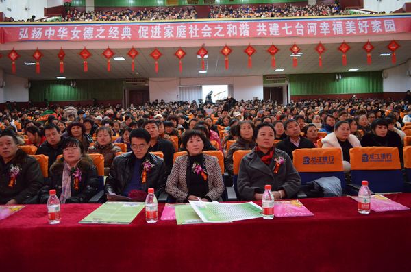 3月1日,由市总工会、矿区工会、共青团七台河市委员会、市妇女联合会、市工商联合会、市文广新局、市商务局联合主办,大商集团新玛特承办的七台河市首届“涵养女德幸福人生”专题报告会在矿区文化中心举行。市人大常委会副主任、市总工会主席曲焱出席报告会并讲话。 报告会邀请了我国资深国学教育专家刘冰,山东省十大优秀母亲田秀英,长春市特等劳动模范王竑锜,河南省嵩山孝道院院长马淑琴等国内知名人士分别以家和万事兴、笑对人生、爱让我们充满智慧、做一名幸福的女人等为题,把中华传统文化与现代教育理念相结合,倡导身心和谐、家庭和谐、社会和谐。 报告会历时两天,参加人数累计超过5000人,讲座赢得了在场人员的阵阵掌声。