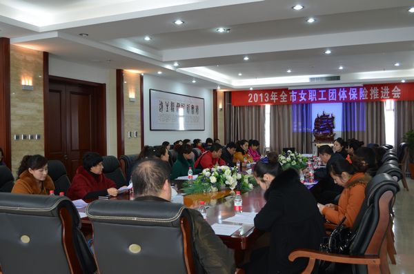 2月28日下午,在市总工会机关会议室召开2013年全市女职工团体保险推进会,市总工会副主席孙发江出席会议并讲话,市总工会女工部长艾美玉主持会议。来自全市各基层工会的工会主席及女工委主任参加会议。 会上,中国人寿保险公司七台河分公司主管副总范彬彬就《国寿女性安康团体疾病保险条款》进行讲解。 孙发江在讲话中指出,在全市深入开展“珍爱女职工团体安康保险“工作,能不断增强女职工抵御疾病风险能力,最大限度地维护好女职工的特殊利益,解决女职工因患特殊疾病支付医药费困难的问题。 会上,下发了《关于认真做好“珍爱女职工团体安康保险”工作的通知》。