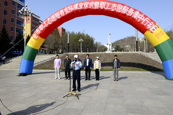 | | 市领导为志愿者代表授旗 |  | | 曲焱在全市职工志愿服务支队成立仪式上讲话 |  | | 孙发江主持仪式 |  | | 志愿者代表宣读倡议书 |  | | 参加活动的志愿者队伍 |  | | 曲焱参加植树活动 |