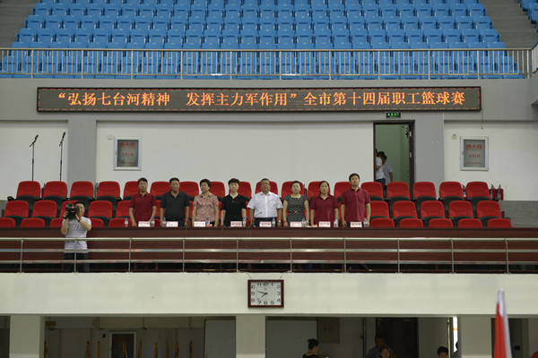 本报7月10日讯(记者韩黎黎)“弘扬七台河精神,发挥主力军作用”,今天上午,七台河市第十四届职工篮球赛在七台河体育中心开幕。市委常委、组织部长朱晓华,市人大常委会副主任、市总工会主席富晓东,副市长刘丽,市政协副主席王婷出席开幕式。 朱晓华宣布比赛正式开始,富晓东主持开幕式。 本届职工篮球赛是由市总工会举办的一次大型比赛,共有29支参赛队伍,370余名职工参加比赛。参赛人员来自全市各机关、企事业单位。参加开幕式的还有全市部分单位的职工方队500余人。 刘丽致开幕词时说,体育活动是职工群众文化生活的重要组成部分,体育竞赛是职工娱乐、锻炼身体、相互交流的活动方式,对提高职工整体综合素质具有重要的作用。举办全市职工篮球赛,就是为了更好地贯彻落实《全民健身实施计划》,动员全市广大职工群众积极投身到全民健身运动中来,达到增强体质、振奋精神、凝聚力量的目的,从而使全市广大职工以昂扬的斗志,饱满的热情,强健的体魄为实现我市的全面转型振兴发展贡献力量。 希望全体参赛运动员模范遵守运动员守则,发扬“更高、更快、更强”的奥林匹克体育精神,团结协作,奋勇争先,赛出风格,赛出水平,赛出友谊,充分展示新时期七台河工人阶级的伟大品格,希望全体裁判员、教练员、工作人员坚持客观、真实,公平、公正的原则,恪尽职守,严于律己,严肃赛风、严格赛纪,确保本次赛事圆满成功。  | | 全市第十四届职工篮球赛开幕式 |  | | 市委常委、组织部长朱晓华宣布比赛开始 |  | | 市人大常委会副主任、市总工会主席富晓东主持开幕式 |  | | 副市长刘丽致开幕词 |  | | 参加篮球赛的各代表队 |  |  |