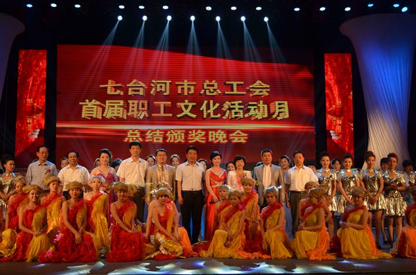 7月1日,矿区文化宫内灯光璀璨、笑声不断、掌声连连,庆祝建市30周年全市首届职工文化活动月总结颁奖晚会隆重举行。佟朋、曲焱、郑君桥、刘婉、高明等市矿领导观看演出并为获奖选手颁奖。 晚会上,来自各条战线的职工代表表演了精彩的文艺节目,充分展示了我市职工健康向上的精神风貌和为七台河发展建功立业的决心与信心。晚会高潮迭起,铁东选煤厂的音乐快板《三十年礼赞》、市第十小学的职工健身操表演、龙洋焦电有限责任公司的男声四重唱《我要去延安》、市第九中学的经典诵读《梅兰竹菊》等节目博得了现场观众的阵阵掌声。 据悉,以“爱岗位、爱生活、爱七台河”为主题的首届职工文化活动月从4月下旬开始筹备,历时两个月的时间,在全市掀起了职工文化热浪。本次活动由市总工会主办,包括职工健身操比赛、经典诵读比赛、美术书法摄影展、微博大赛、礼仪风采大赛等,内容丰富多彩,活动形式灵活多样,各单位认真组织,广大职工踊跃参与,全面唱响了“工人伟大、劳动光荣”的时代主旋律。(韩黎黎)